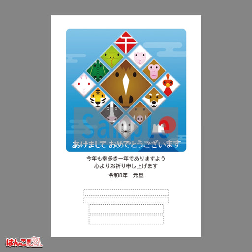 11月20日までの注文で早割20%OFF‼ 松田 和年賀状デザインをメインに活動。和風の和やかなイラストを主に制作。朗らかな気持ちになれるような作品を心がけている。 名入れパターンが選べます。 ※販売価格には「お年玉付き年賀はがき」の代金も含みます。