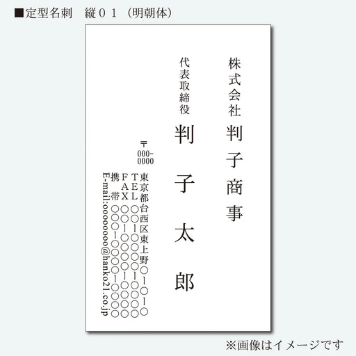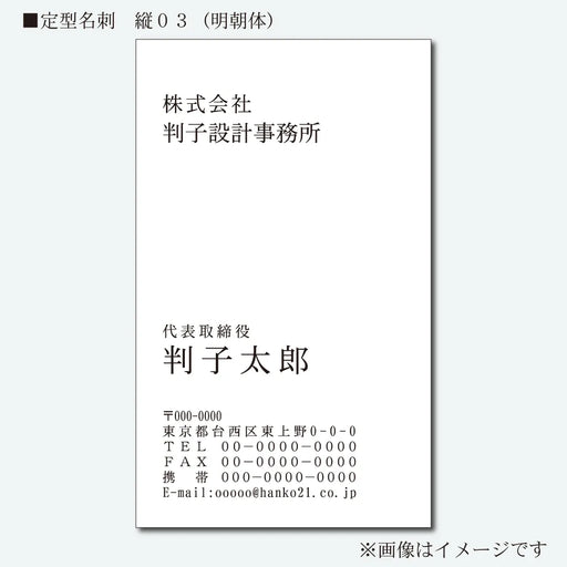 定型名刺 モノクロ 片面 縦03(明朝体)