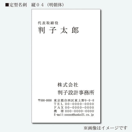 定型名刺 モノクロ 片面 縦04(明朝体)