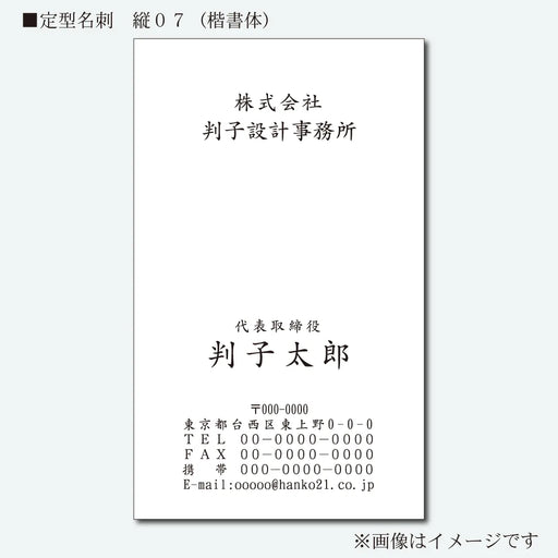 定型名刺 モノクロ 片面 縦07(楷書体)