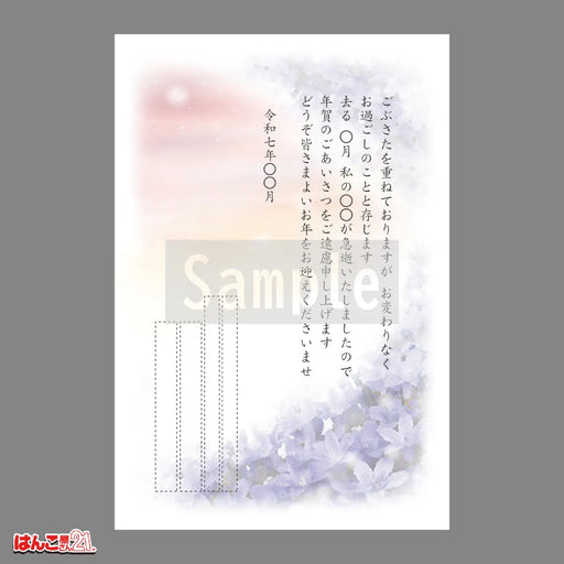 喪中はがきは、近親者が亡くなったために「喪に服しているので、新年の挨拶(年賀状)を失礼します」ということを事前にお知らせするための年賀欠礼の挨拶状です。 先方様が年賀状の準備を始める前、12月初旬には相手に届くように早めに準備することをおすすめします。 ※小文章や名入れパターンが選べます。※...