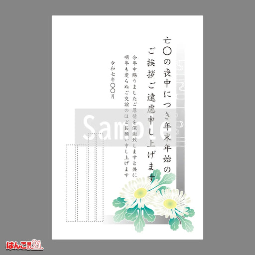 喪中はがきは、近親者が亡くなったために「喪に服しているので、新年の挨拶(年賀状)を失礼します」ということを事前にお知らせするための年賀欠礼の挨拶状です。 先方様が年賀状の準備を始める前、12月初旬には相手に届くように早めに準備することをおすすめします。 ※小文章や名入れパターンが選べます。※...